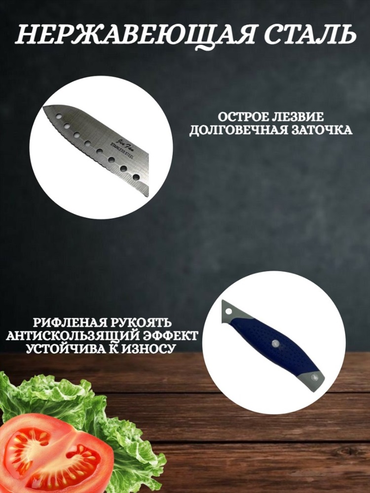Особенности ножа - мытье в посудомоечной машине; рифленое лезвие