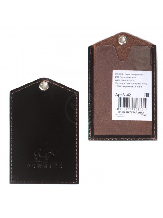 Обложка пропуск/карточка/проездной Premier-V-42 натуральная кожа коричневый гладкая (88) 183328