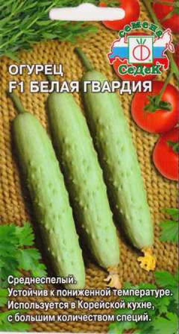 Среднеспелый (50-55 дней) партенокарпический гибрид для выращивания в теплицах и пленочных укрытиях. Растение индетерминантное, среднеплетистое, женского типа цветения. Зеленцы цилиндрические белой окраски, с легким салатовым оттенком, с редким расположением бугорков, длиной 18-22 см, массой 140-170 г, плотные, ароматные, без горечи. Урожайность в плёночной теплице 11,0-12,5 кг/м2. Ценность гибрида: устойчивость к вирусу огуречной мозаики, мучнистой росе, кладоспориозу, выносливость к пониженным температурам, обильное и продолжительное плодоношение. Назначение универсальное. Придаст пикантность и разнообразие Вашим салатам и консервам.