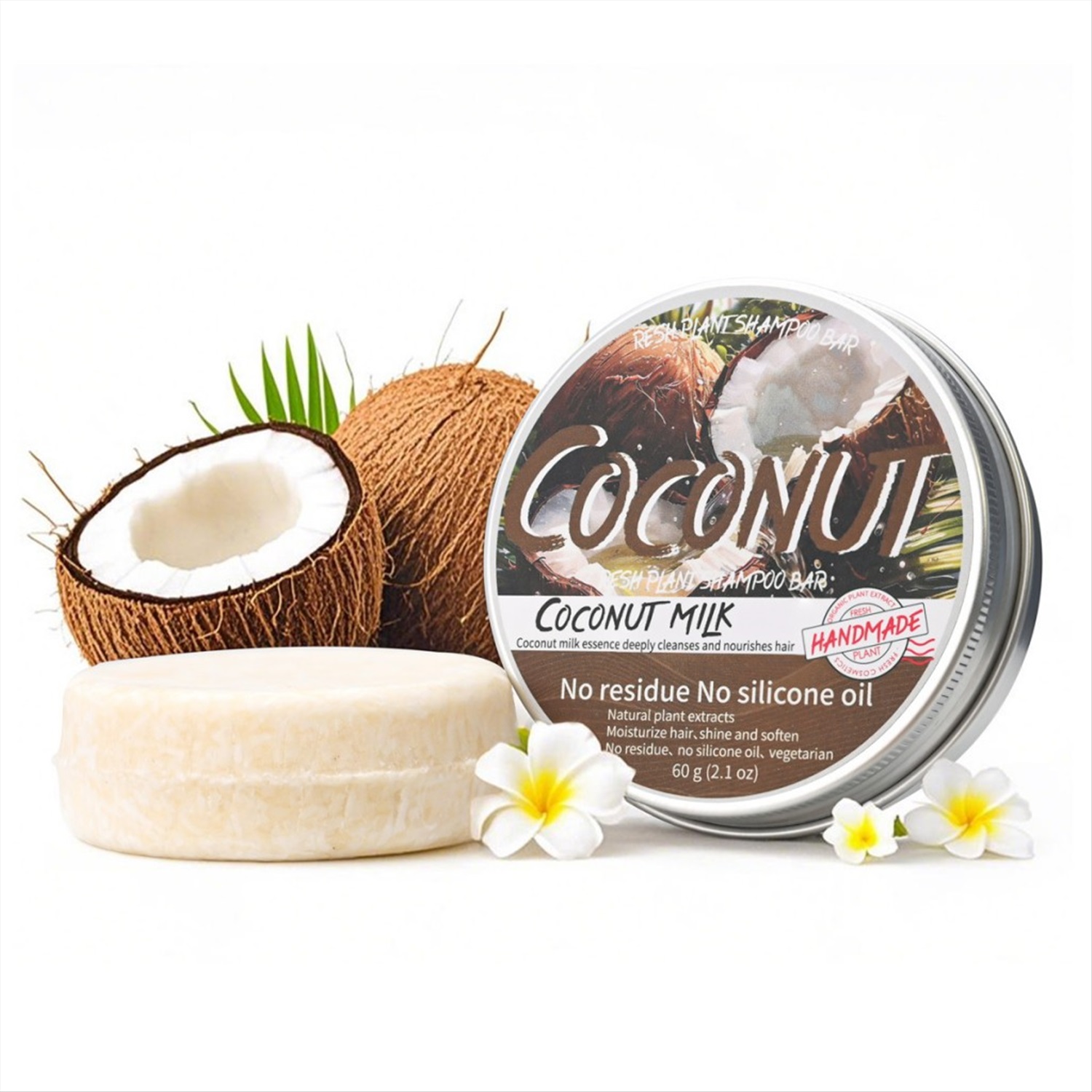 Натуральный твёрдый шампунь с натуральным экстрактом кокоса мягко очищает, придает волосам естественную силу, увлажняя их и делая более эластичными. Способ применения: Смочить волосы водой. Провести несколько раз твердым шампунем по волосам и вспенить. Помассировать волосы и кожу головы. Тщательно смыть водой. При необходимости повторить процедуру. Комментарии к товару