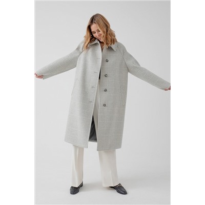 Пальто прямого силуэта из шерстяной ткани в светло-серую клетку, длина чуть ниже колена. Классический отложной воротник, что позволяет носить пальто без дополнительных теплых аксессуаров, при этом сохраняя тепло. Комфортный рукав-реглан, застежка на ряд крупных контрастных пуговиц, два глубоких и функциональных кармана с листочками. Пальто выполнено из премиальной шерстяной ткани с использованием мембраны RaftPro, которая защитит даже от сильного ветра. Произведено в Санкт-Петербурге.