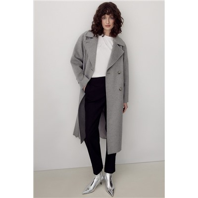 Классическое пальто прямого силуэта из мягкой ворсовой ткани в светло-сером оттенке с эффектом "меланж". Пальто имеет широкий английский воротник и утонченный рукав-реглан. По низу рукава располагаются декоративные паты. Застегивается изделие на два ряда крупных пуговиц, конструкция застежки позволяет полностью запахнуть лацкан воротника. Комфортная длина пальто, закрывающая колено, позволяет с легкостью создавать самые различные современные образы. По бокам находятся глубокие карманы с листочками. Завершает образ съемный пояс на стильной геометричной пряжке в цвет пуговиц. А для наилучшей защиты от непогоды пальто выполнено с использованием высокотехнологичной мембраны RaftPro. Произведено в Санкт-Петербурге.