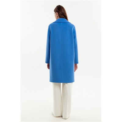 Двубортное укороченное пальто прямого силуэта из шерстяной пальтовой ткани яркого василькового оттенка. Пальто имеет широкий английский воротник новой формы с отделкой декоративными строчками. Это пальто с комфортным втачным рукавом и глубокими функциональными карманами с лаконичными листочками станет незаменимой вещью в Вашем весеннем гардеробе. Пальто застегивается на два ряда стильных крупных пуговиц под натуральный рог. Для дополнительной защиты от непогоды изделие выполнено с использованием высокотехнологичной мембраны RaftPro. Произведено в Санкт-Петербурге.