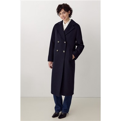 ID товара: 995510 Состав: Основная ткань- Шерсть 50%, Полиэстер 50%; Полиэстер 55%, Вискоза 45% Сезон: Демисезон Длина: Удлиненная Фасон: Прямое Рукав: длинные Вид застежки: Пуговицы Тип карманов: Прорезные Декоративные элементы: Пояс Стиль: кэжуал Страна бренда: Россия Страна производства: Россия Двубортное пальто силуэта удлиненный кокон - это всем полюбившаяся классика пальто, представленная в новом видении и в современных оттенках. Пальто комфортной длины ниже колена, что расширяет возможности для формирования образов. Уникальный рукав-кимоно спереди и реглан на спинке создает уютный и расслабленный образ и не стесняет движений. Горловину пальто обрамляет классический широкий английский воротник. Пальто имеет два глубоких кармана с листочками. Застегивается на два ряда стильных крупных пуговиц. Дополняет образ съемный пояс, благодаря которому можно подчеркнуть талию. Пальто изготовлено из премиальной ткани с высоким содержанием шерсти в классическом черно-синем оттенке. А для наилучшей защиты от непогоды пальто выполнено с использованием высокотехнологичной мембраны RaftPro. Произведено в Санкт-Петербурге. Комментарии к товару