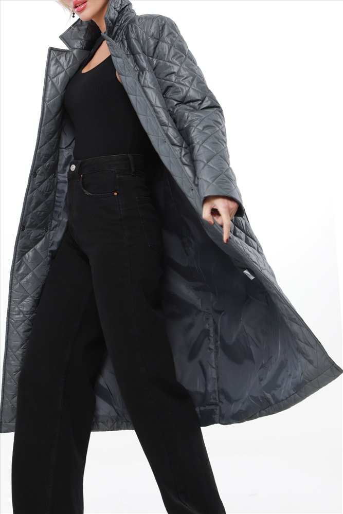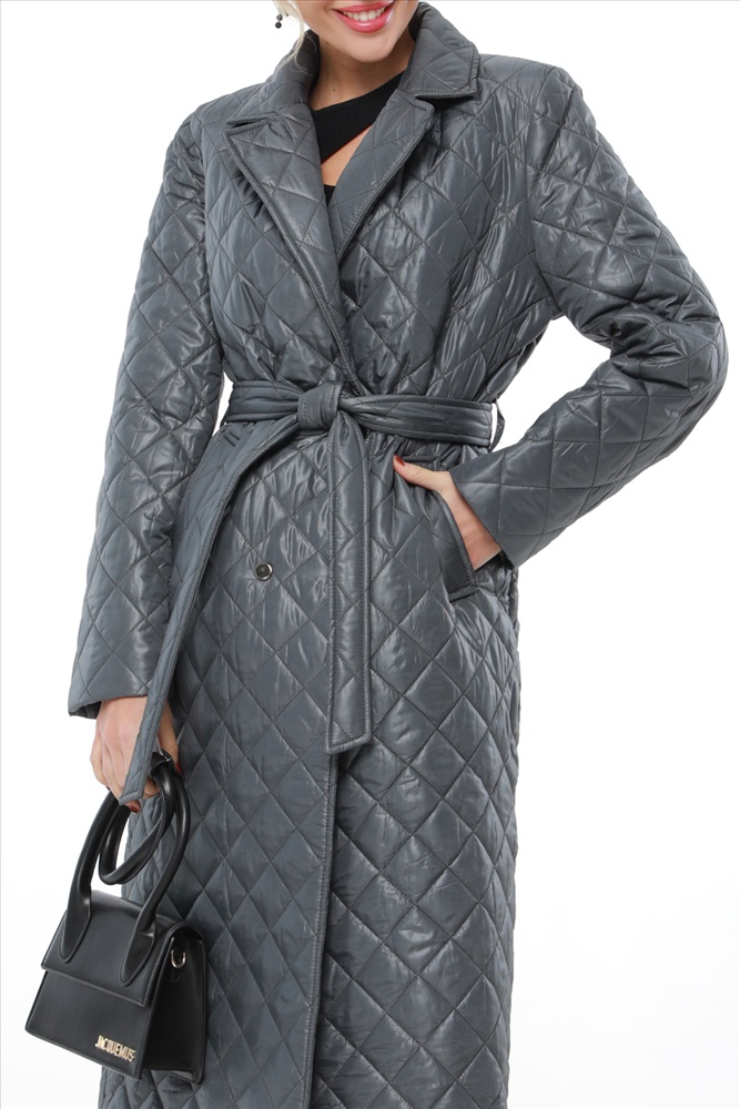 Декоративные элементы: Пояс Вид застёжки: Кнопки Вырез горловины: Отложной воротничок Длина изделия по спинке: 114 Тип рукава: Длинный Уход за вещами: Бережная стирка при 30 градусах Фактура материала: Текстильный Состав: 100% полиэстер Тип ткани: плащевая Цвет: Тёмно-серый Стеганое пальто длины миди с поясом — элегантная модель, которая поможет выглядеть стильно и женственно даже в прохладное время года. Классический фасон с отложным воротничком, застежкой на кнопки и разрезом сзади безупречно смотрится на женщинах любой комплекции и зрительно вытягивает силуэт. С помощью пояса из комплекта можно создать привлекательный акцент на талии и приблизить фигуру к эталонным очертаниям «песочных часов». Два кармана по бокам функциональны, но при этом не добавляют лишнего объема. Пальто выполнено из влагоотталкивающего плащевого материала с утеплителем, который хорошо сохраняет тепло и прекрасно подходит для прохладных осенне-весенних дней и еврозимы. Стирать модель лучше в деликатном режиме при температуре до 30 градусов без отжима с использованием жидких моющих средств, сушить на плечиках. Длина: 44 размер - 114 см 46 размер - 114 см 48 размер - 115 см 50 размер - 115 см 52 размер - 116 см 54 размер - 116 см 56 размер - 117 см Бережная стирка при 30 градусах Цвет изделия на фотографии может отличаться от фактического товара, что связано с искажением цветопередачи монитором, настройками фотоаппаратуры и прочими факторами Пропорции