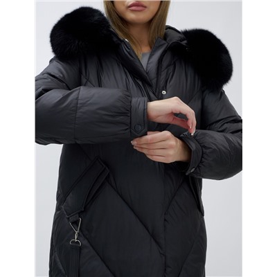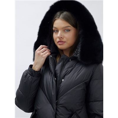 Пальто женское зимние с мехом песец люкс класса черного цвета 1316Ch