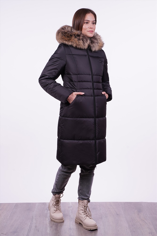 Лаконичное зимнее полупальто с втачным рукавом, центральной застежкой на молнию, с аккуратным капюшоном. Силуэт полуприлегающий, оригинальная стежка подчеркивает линию талии. Удобные карманы в рельефах переда. Модель выполнена из нового вида ткани с умеренной плотностью и матовой поверхностью, которая хорошо держит форму, износоустойчива и неприхотлива в чистке. Для защиты от ветра и мороза рукава по низу дополнены внутренними трикотажными манжетами. В капюшоне отстегивающаяся опушка из натурального меха. В изделии использована система утепления Air Twin (от 0 °С до -20 °С) Длина пальто по спинке ок.96 см. Длина рукава ок.64 см. Рост 170 см Р-ры 42-52 Состав: полиэстер - 100%, утеплитель: Air Twin Light 200 г/m 2 Цвет: черный Цвет одежды может незначительно отличаться от оригинала. Комментарии к товару