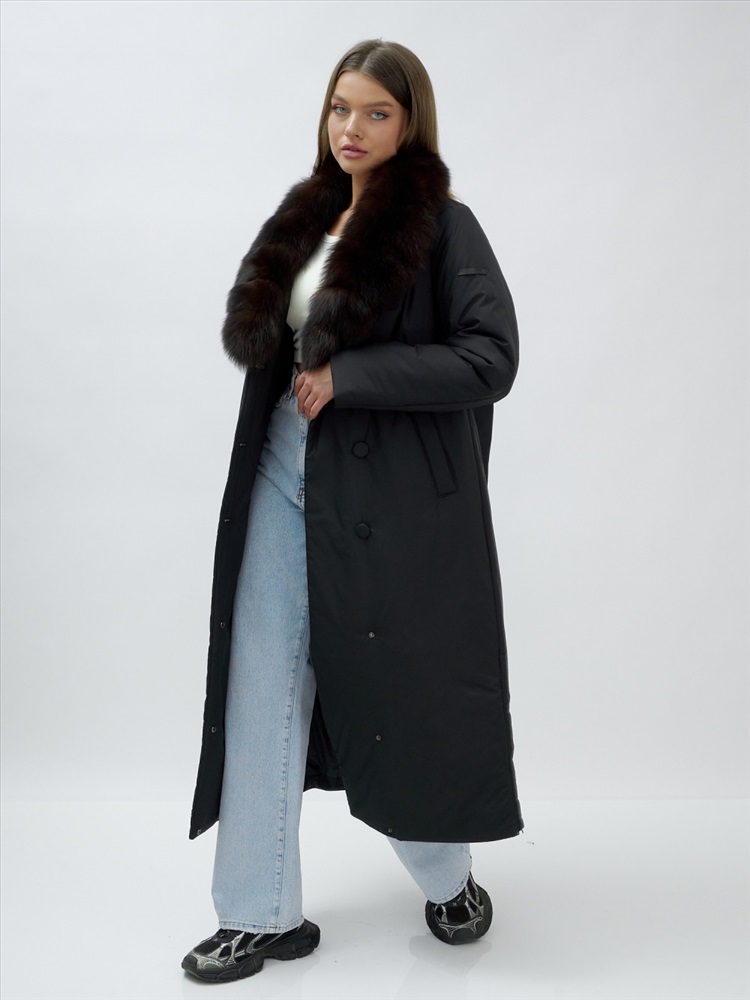 Зимнее женское длинное пальто Люкс качества из натурального меха песец.