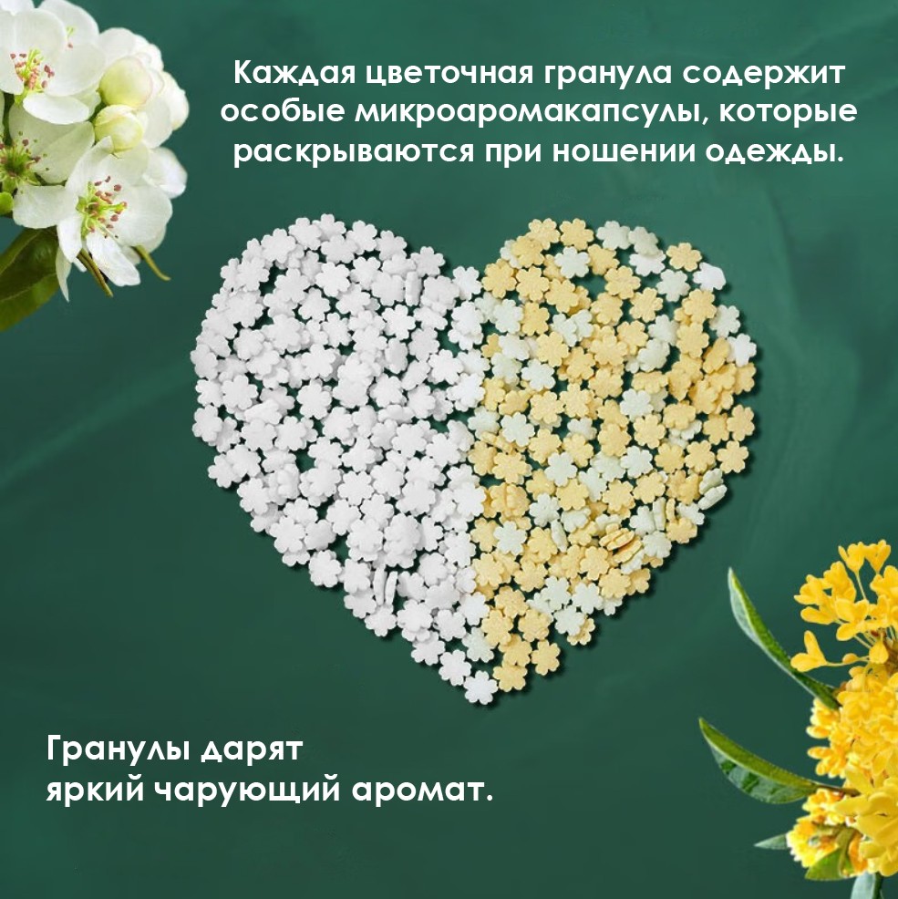 Концентрированный гранулированный ополаскиватель для стирки с неповторимым ароматом придает одежде мягкость и нежность. Каждая гранула содержит особые микроаромакапсулы, которые раскрываются во время соприкосновения волокон ткани при использовании белья или ношении одежды и дарят яркий чарующий аромат. Состав аромата: Верхние ноты - Груша; Ноты сердца - Грушевый цветок; Базовые ноты - Удовое дерево, Сандал. Способ применения: Аромагранулы насыпаются непосредственно в барабан стиральной машиной перед началом стирки. Вы можете увеличить или уменьшить количество в зависимости от ваших личных предпочтений в отношении интенсивности аромата и веса белья. Меры предосторожности: хранить в недоступном для детей месте. Применять в соответствии с назначением. Комментарии к товару