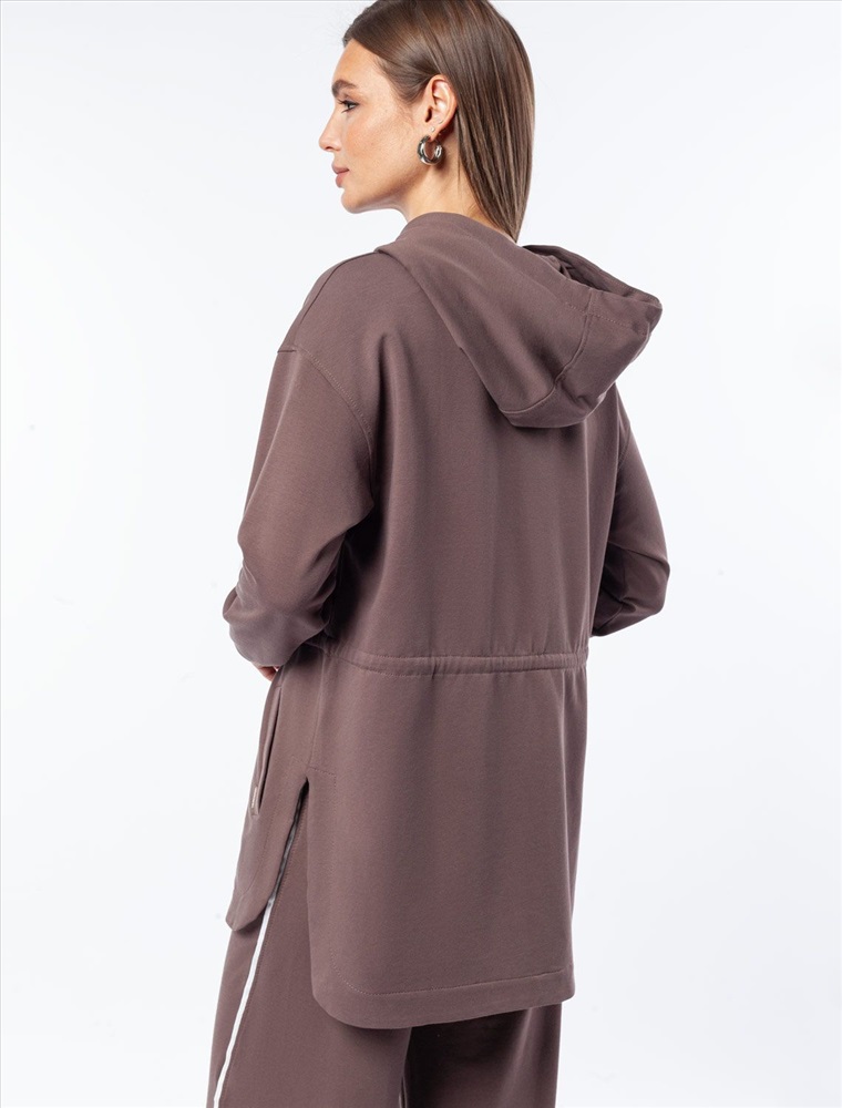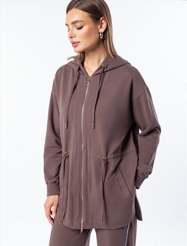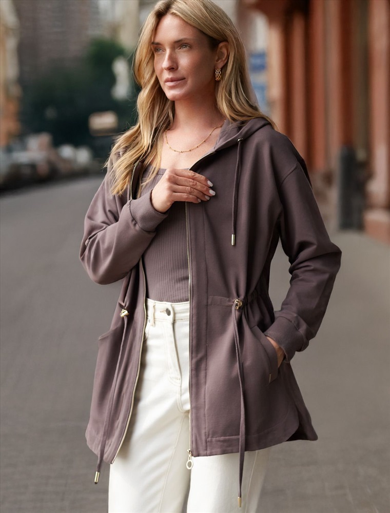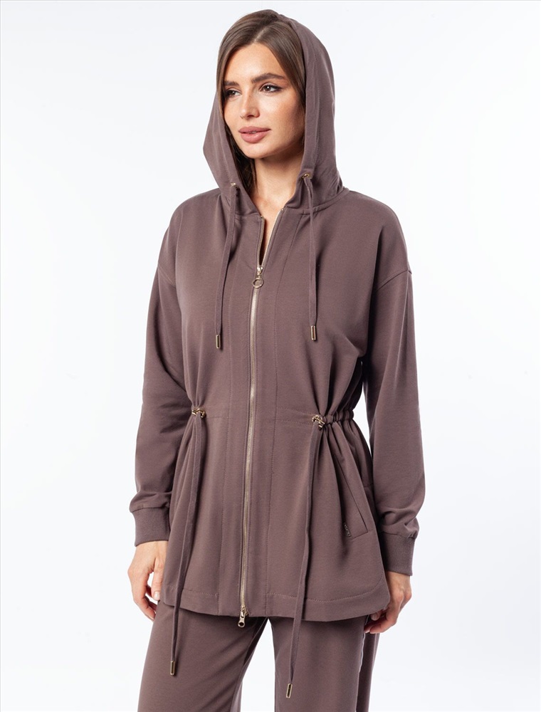 Плотность: 240 Г/м2 Параметры модели на первом фото: Рост 170, бюст 89, талия 63, бедра 92 Размер товара на первом фото: 42 Парка выполнена из эластичного футера двухнитки. Модель дополнена золотистой фурнитурой высокого качества с логотипом бренда. Как у классической модели, изделие с капюшоном, боковыми карманами и регулируемым поясом на хлопковом шнурке. Сочетается в костюме с брюками D44.136, D44.137 и юбкой D46.034 Комментарии к товару