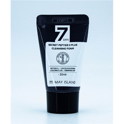 May Island 7 Days Secret Peptide 8 Plus Cleansing Foam – это пенка для умывания с пептидами. Пенка с пептидным комплексом, маслом кокоса и керамидами предназначена для возрастной кожи, по мимо очищения оказывает антивозрастной эффект. Хорошо увлажняет, напитывает, повышает упругость, разглаживает морщины, укрепляет гидро-липидный барьер кожи, предотвращая потерю влаги. Комплекс из 8 видов пептидов запускает процессы регенерации клеток кожи и активизирует обмен веществ, контролирует формирование клеточного белка, восстанавливает структуру волокон коллагена и стимулирует его выработку. Благодаря воздействию пептидов, могут уменьшиться уже имеющиеся морщины, кожа подтянется, увлажнится, будет активно сопротивляться многочисленным факторам старения, цвет лица улучшится. Пептиды также способствуют укреплению контуров лица, повышению общего тонуса кожи. Пептиды играют важную роль в восстановлении нормального функционирования клеток, они обладают высокой антиоксидантной активностью, поэтому кожа при их воздействии омолаживается, а общее старение – замедляется. Масло кокоса увлажняет, питает, обладает противовоспалительными и регенерирующими свойствами, является антиоксидантом, защищает кожу от негативных воздействий окружающей среды. Керамиды NP растительного происхождения быстро и легко проникают в глубокие кожи, оказывают мощный антивозрастной эффект и защищают эпидермис от негативного влияния окружающей среды. Они способствуют обновлению кожи, улучшают защитные и барьерные функции, нормализуют гидролипидный баланс, защищают от обезвоживания.