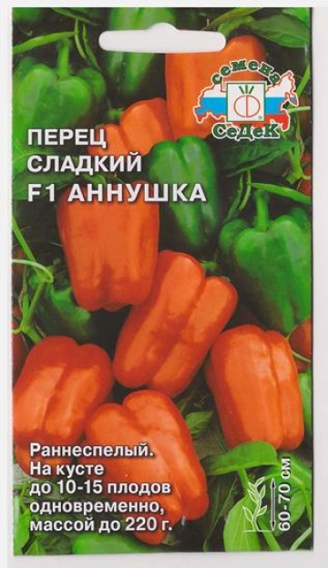 Раннеспелый (109-113 дней) гибрид для открытого грунта и пленочных укрытий. Растение высокорослое, высотой 60-70 см. Плоды крупные, призмовидные, в технической спелости зеленые, в биологической – густо-красные, массой 170-220 г, мясистые. Толщина стенки 5-7 мм. Одновременно на растении созревает 10-15 сочных, сладких и очень вкусных плодов. Урожайность 7 кг/м?. Ценность гибрида: крупноплодность, обильное и дружное формирование урожая. Рекомендуется для употребления в свежем виде и кулинарной переработки. Фасовка 0,2г Комментарии к товару