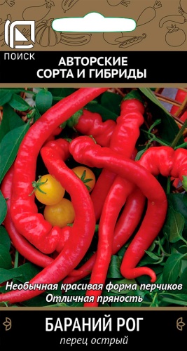 Необычная красивая форма перчиков! Раннеспелый высокоурожайный сорт: 100-105 дней от всходов до начала плодоношения. Для открытого и защищенного грунта, временных пленочных укрытий. Куст высотой 50-60 см. Плоды узкоконусовидные, длинные, скручены по спирали и похожи на бараний рог, пикантного острого вкуса, очень ароматные. Окраска незрелых плодов светло-зеленая, зрелых – светло-красная. Используют как приправу к блюдам, в качестве специй при квашении, мариновании и консервировании. При консервировании семена не удаляют. Фасовка 0,25г Комментарии к товару