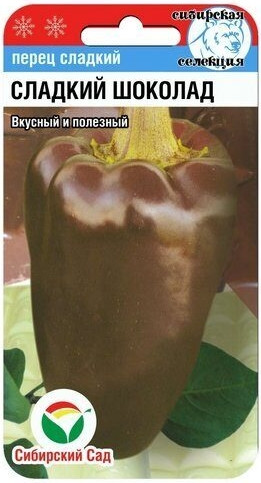 Новый интересный сорт перца сибирской селекции, в биологической спелости приобретающий настоящую шоколадную окраску. Сорт среднеспелый, куст высотой 70-80 см, формирует большое количество удлиненно-пирамидальных плодов с закругленным гладким кончиком. Окраска перца меняется от темно-зеленой до шоколадной, но изнутри зрелый плод красного цвета. Толщина стенки 5-6 мм, кожица нежная, вкус очень приятный и своеобразный, с горьковато-шоколадным ароматом. Плоды вкусны в свежем виде, украсят и разнообразят вкусовую гамму и расцветку свежих летних салатов. Сорт рекомендуется выращивать в открытом грунте и под пленочными укрытиями. Посев на рассаду производят за 60-70 дней до высадки растений на постоянное место. Оптимальная постоянная температура прорастания семян 26-28°С. При высадке в грунт на 1 кв. м размещают 5 растений. Сорт хорошо реагирует на полив и подкормки комплексными минеральными удобрениями Комментарии к товару