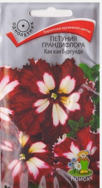 Новая превосходная крупноцветковая петуния с бархатными кружевными цветами. Растение мощное высотой около 50 см. Цветы крупные бордово - белые. Цветение обильное с июня до сильных осенних заморозков. Прекрасно подходит для клумб, рабаток.Агротехника.Растение светолюбивое, засухоустойчивое, хорошо растет на любых питательных почвогрунтах.Посев семян на рассаду проводят в феврале-марте. Семена слегка вдавливают в почву, землей не присыпают. Посадочную емкость накрывают стеклом и ставят в освещенное место. При температуре почвы +18-20 °C всходы появляются на 14-20 день. Сеянцы пикируют в фазе 2-х настоящих листьев. Рассаду высаживают в открытый грунт после окончания весенних заморозков. Фасовка 10шт