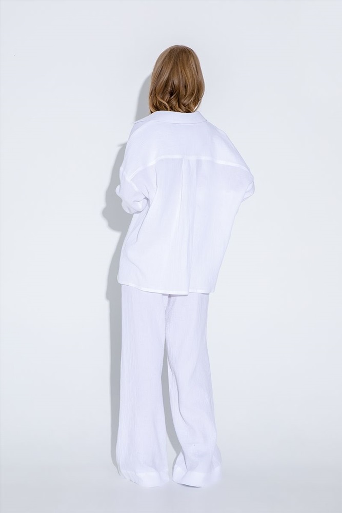Страна производитель: Республика Беларусь Комплектация: Брюки, Рубашка Сезон: Лето Коллекция: Лето, Лето 2023 Стиль: На каждый день Цвет: белый Материал: хлопок Состав: 100% хлопок Рост: 170 см Описание: Костюм- двойка из свободной рубашки и широких брюк из облегченного хлопка Комментарии к товару