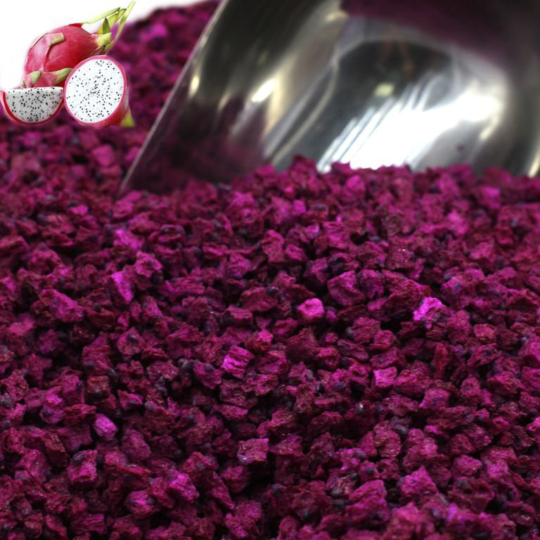 Сублимированные продукт благодаря технологическим особенностям обработки сохраняет в себе все качества свежего плода. Имеет насыщенный вкус, который доступен в любое время года.Сублимированные кусочки фрукта питахайи используется в качестве добавки и декора в кондитерских изделиях.