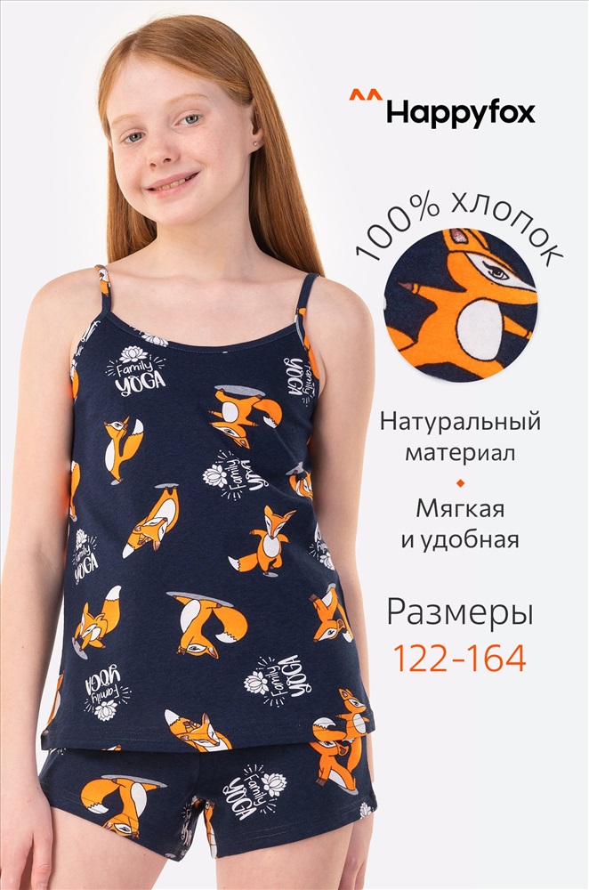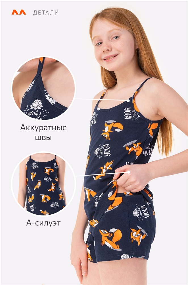 Милая и яркая пижама с шортами для подростков с актуальным принтом. В наборе майка топ на тонких бретелях и короткие шортики свободного кроя.
