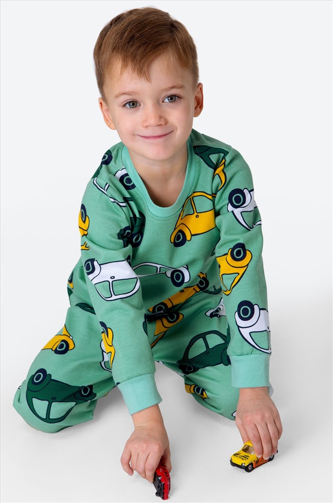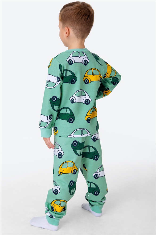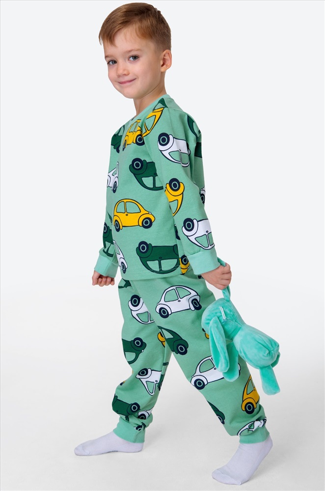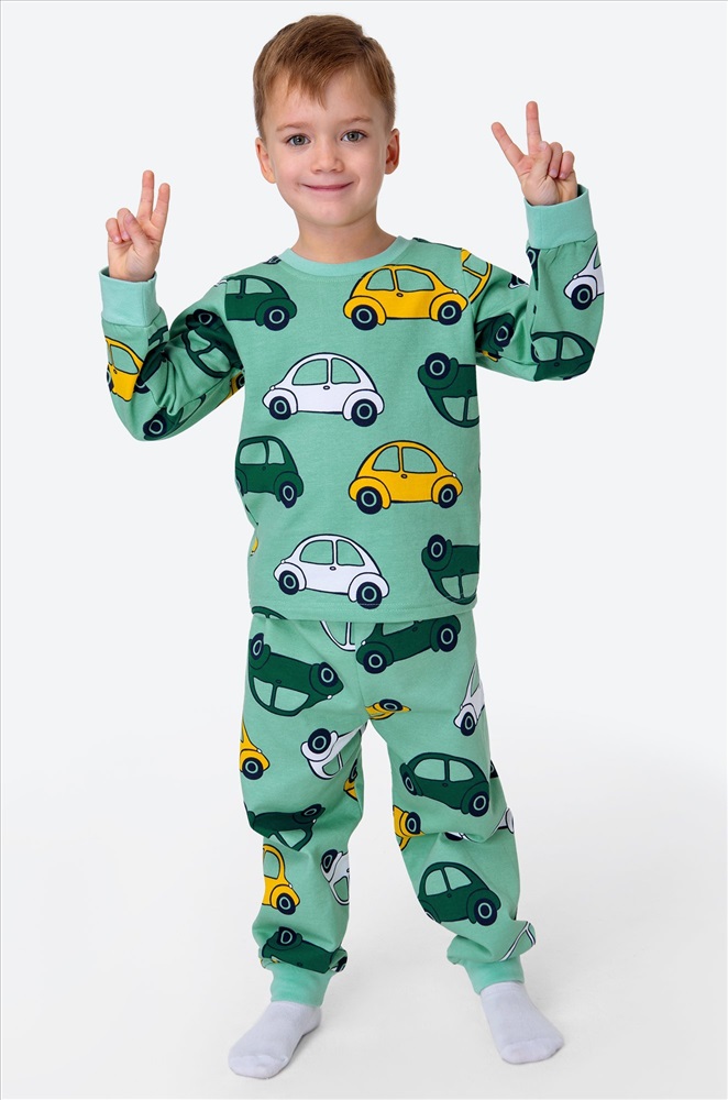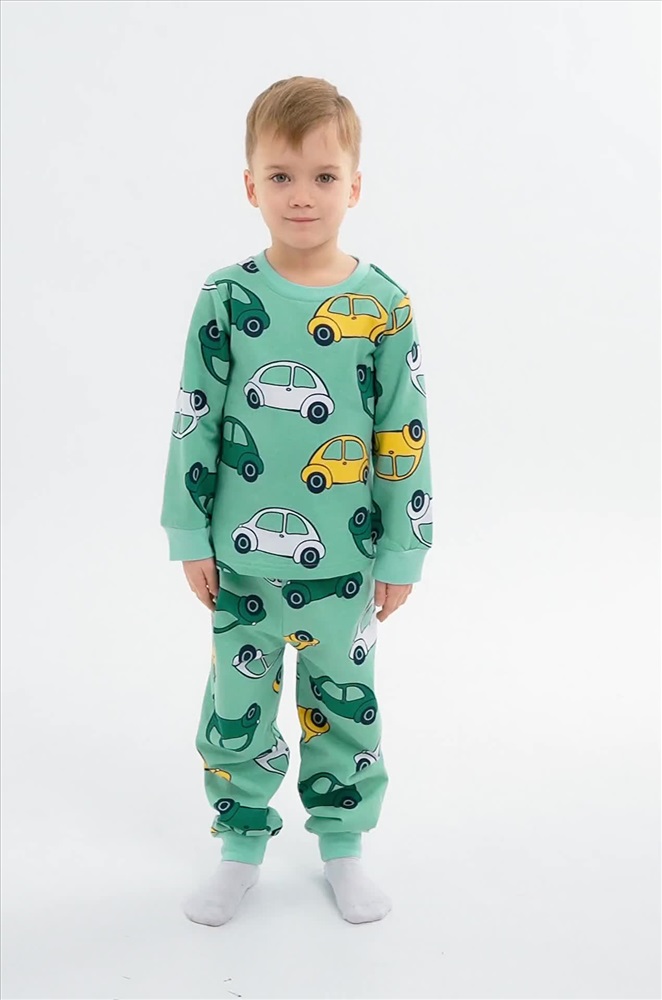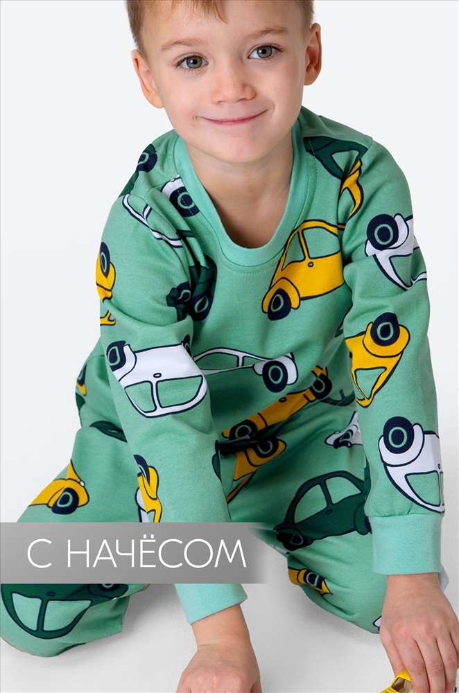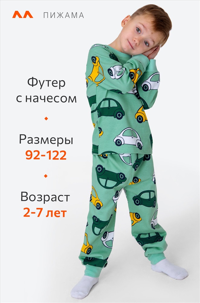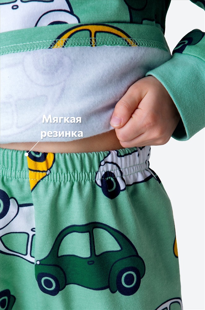 Теплая детская пижама с брюками для мальчиков выполнена из 100% хлопка. Пижама из футера с начесом станет любимым атрибутом отдыха благодаря свободному крою и спокойному малахитовому цвету. Прикольный принт Машинки поднимает настроение и создает уютную атмосферу. Домашняя зеленая пижамка выполнена из трикотажной ткани футер, которая идеальна для зимы. Начес отлично сохраняет тепло. Пижама для детей не боится частых стирок и надолго сохраняет первоначальный внешний вид. В наборе утепленные штаны и джемпер с длинным рукавом. Благодаря эластичным манжетам рукава и штанины не задираются, а хлопковая пижамка комфортна даже во время сна. Мягкая резинка в поясе нежно прилегает к телу. Прямой крой дарит свободу движений. Пижама из трикотажа идеальна для дома, детского сада, отдыха и активных игр. Рост модели 110 см, параметры: объем груди 55, объем талии 53, объем бедер 56 см. На нем размер 110.