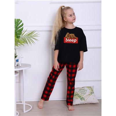 Пижама для девочки с брюками медвежонок клетка костюм домашний трикотажный детский хлопок с принтом. Костюм домашний летний легкий для девочки с брюками, с принтом мишка, костюм домашний из хлопка детский. Комфортный костюм для дома, прогулок и сна. Детская пижама для девочки подростка с футболкой и брюками или лонгсливом и брюками, из трикотажа. Отлично подойдет не только как пижама, но и как нарядный домашний костюм для девочки - подростка.