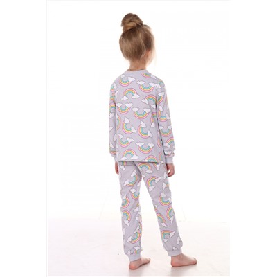 Материал: Кулирка Симпатичная пижама для девочек с милым принтом на полочке. У кофты округлая горловина, втачной рукав, обработанный манжетой. Брюки прямого кроя, с манжетами.