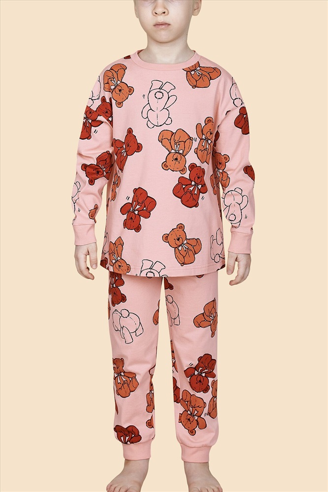 Детская пижама для девочки. Модель выполнена из 100% хлопка — идеальный вариант для детской пижамы. Комплект для сна мягкий, гипоаллергенный и хорошо пропускает воздух. В хлопковой пижаме ребёнку будет тепло, даже если он раскроется во время сна. Всё это способствует комфортному и качественному сну. Джемпер и брюки умеренного объёма, плечо немного спущено, рукава широкие и свободные — в пижаме очень удобно спать. В поясе и по низу брюк мягкие и широкие резинки — не перекручиваются и не давят. Манжеты и отделка горловины из эластичной рибаны — они не растягиваются, пижаму удобно надевать и снимать. Хлопковая пижама украшена милым сплошным принтом в виде плюшевых медвежат — понравится любой девочке. Детская пижама неприхотлива в уходе. Принт эластичный и прочный, легко переносит частые стирки. Детская пижама с брюками подходит для сна как дома, так и в детском саду — отличный выбор для вашего ребёнка! Помните о правильном уходе за изделием: рекомендуется стирать при температуре не выше 30 °C, без предварительного замачивания, с изнанки. Это поможет сохранить качество и цвет пижамы на длительное время. Не забывайте о выборе правильного размера. Используйте таблицу размеров на фотографии, чтобы выбрать подходящий вариант для вашей девочки. Обратите внимание, что цвет товара на экране вашего устройства может отличаться от реального.