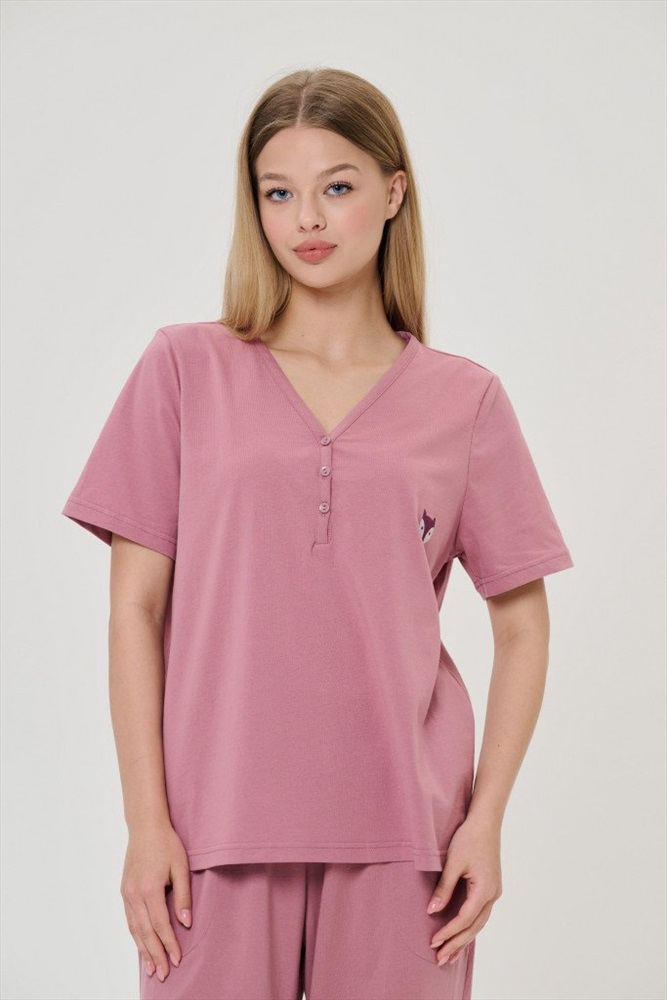 Состав: 100% хб Рост модели на фото, см: 170 Застежка: пуговицы Силуэт: прямой Вырез горловины: v-образный Тип рукава: втачной Артикул: 4377-14