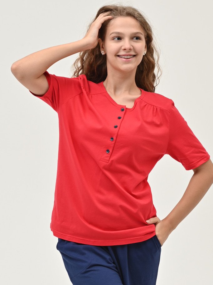 Состав: 100% хб Рост модели на фото, см: 170 Застежка: пуговицы Силуэт: свободный Вырез горловины: круглый Тип рукава: втачной Карманы: в боковом шве Артикул: 4398-05