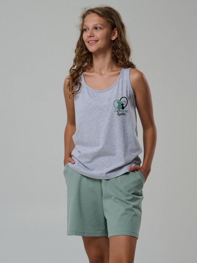 Состав: футболка 92%-хб 8%-пэ; шорты 100% хб Рост модели на фото, см: 170 Силуэт: полуприлегающий Вырез горловины: круглый Карманы: в боковом шве Артикул: 4457-03
