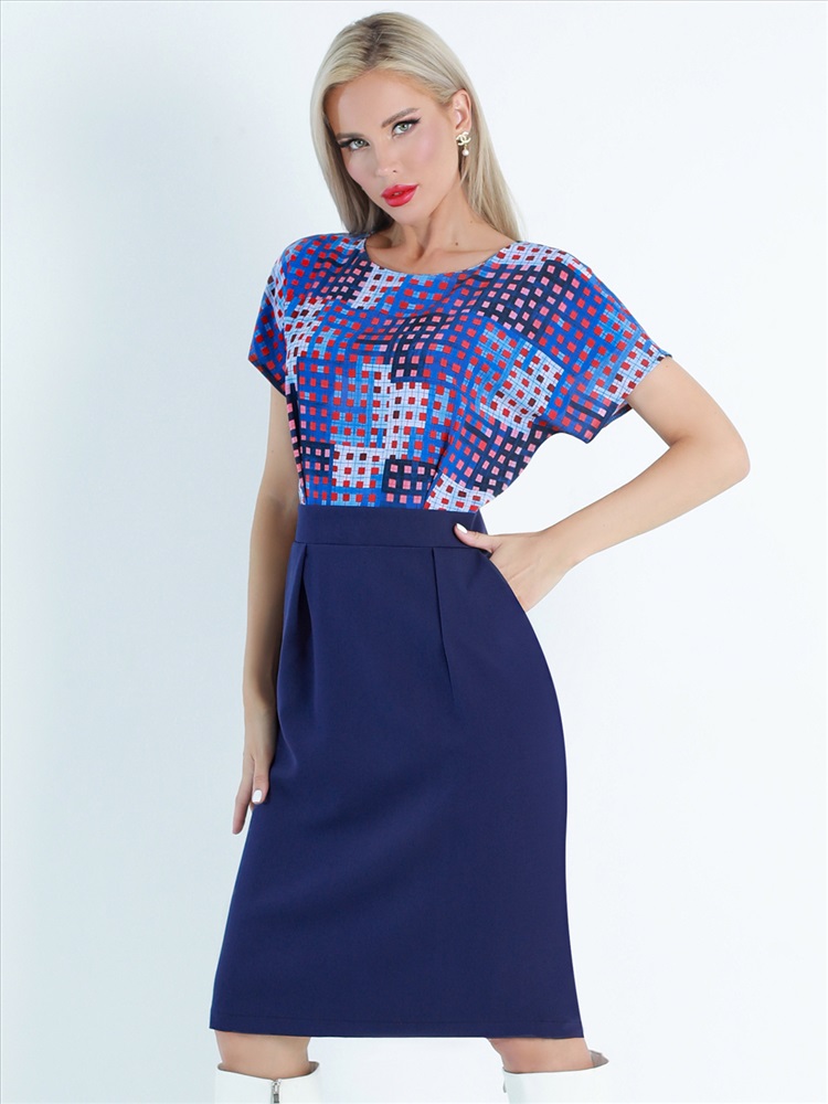 Декоративные элементы: Складки Вид застёжки: Молния Вырез горловины: Округлый Длина изделия по спинке: 102 Модель платья: Полуприлегающий силуэт Тип рукава: Короткий Уход за вещами: Бережная стирка при 30 градусах Фактура материала: Текстильный Состав: 98% полиэстер, 2% эластан Тип ткани: Плательно-костюмная Цвет: Тёмно-синий Комбинированное платье с имитацией блузки — стильная новинка для деловых леди, способная заменить сразу две вещи в гардеробе. Модель приталенного силуэта с коротким рукавом красиво подчеркивает фигуру, но не сковывает движений за счет разреза на юбке сзади. Защипы спереди помогают сгладить нюансы в области живота и добавляют изюминку. Два боковых кармана функциональны, но при этом незаметны. Застежка на потайную молнию на спинке позволяет легко надевать и снимать платье. Элегантная модель с нарядным верхом станет идеальным выбором как для повседневных встреч, так и для похода в офис или на вечернее мероприятие. Платье выполнено из плотной ткани, которая хорошо держит форму, практически не мнется и слегка тянется. Рекомендуется стирать изделие в деликатном режиме без отжима. Длина: 44 размер - 102 см 46 размер - 102 см 48 размер - 103 см 50 размер - 103 см 52 размер - 104 см 54 размер - 104 см 56 размер - 105 см Бережная стирка при 30 градусах Цвет изделия на фотографии может отличаться от фактического товара, что связано с искажением цветопередачи монитором, настройками фотоаппаратуры и прочими факторами Пропорции