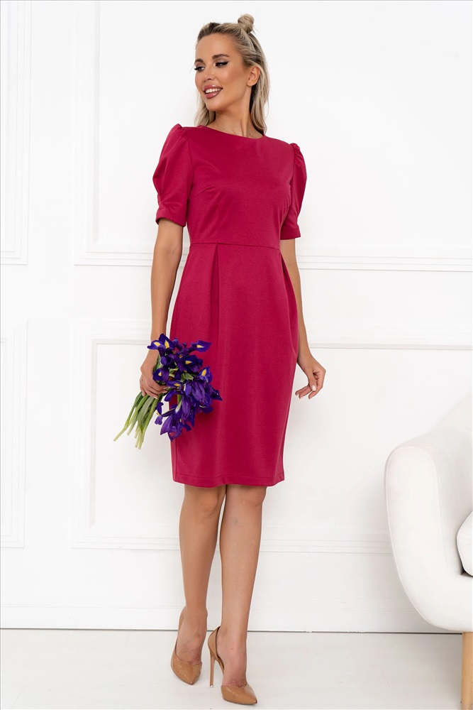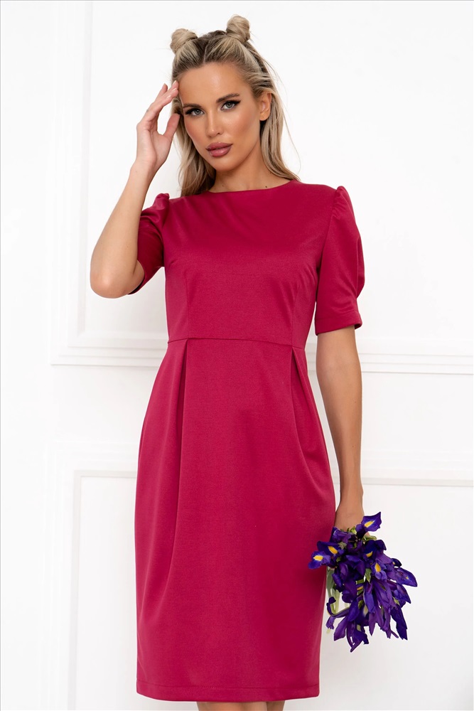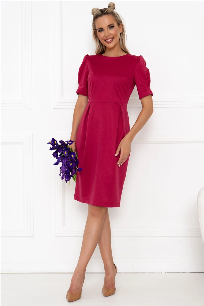 Страстный красный для романтического или праздничного вечера. Что может быть лучше? Это женственное платье вполне может претендовать на идеал для вечеринок и встреч тет-а-тет. Немного приподнятые рукава-фонарики подчеркнут хрупкость плеч, отрезная талия, складки на юбке делают бедра обворожительно притягательными, а саму фигуру пропорциональной. Высокий каблук и мини сумочка и вы на высоте!