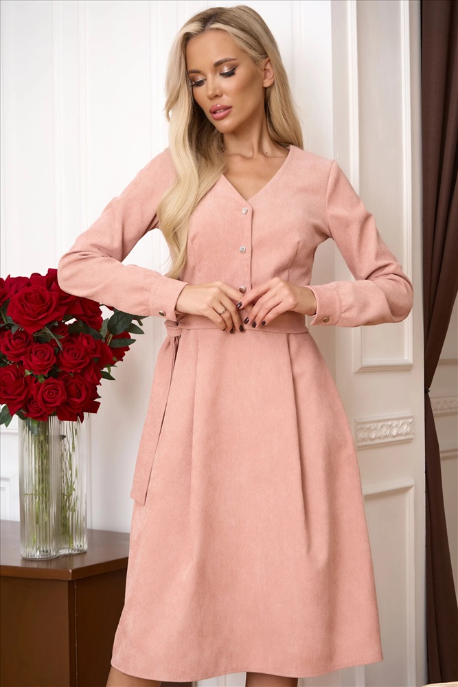 Вырез горловины: V-образный Изящное платье из ткани вельвет.