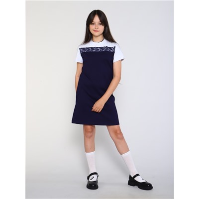 Подростковое платье прямого кроя с отрезной кокеткой по линии груди.