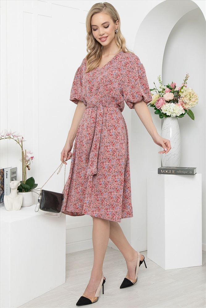 Яркое летнее платье точно не оставит Вас без внимания окружающих. Роскошные, объемные рукава со спущенным плечевым швом добавят образу легкости и изысканности. Все преимущества фигуры подчеркнет пояс из основно ткани, который идет в комплекте. Талия отрезная, юбка полусолнце.