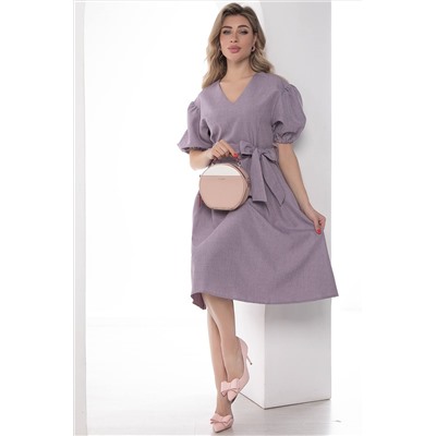 Платье приталенного силуэта, с акцентным поясом-кушаком подчеркивающим красоту линий женского тела. Платье с коротким, эффектным рукавом-фонарик. Изделие с изящным V-образным вырезом, и застежкой-молнией по спинке.