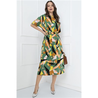 Особенное и харизматичное! Анзалино – платье свободного силуэта из лёгкой хлопковой ткани с изящным принтом. Вырез горловины классический овальный. Пояс на резинке. Рукава цельнокроеные, короткие. Яркие и вдохновляющие оттенки зелёного и жёлтого добавят свежесть образу, а струящаяся ткань подчеркнёт хрупкость и утончённость силуэта!