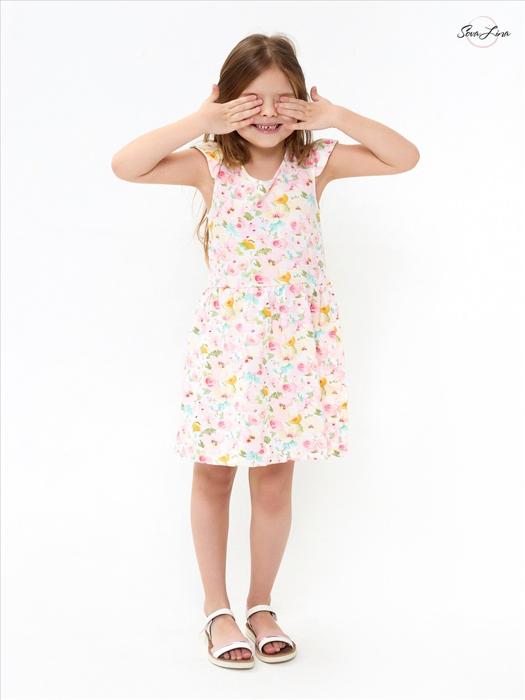 Трикотажное облегчённое платье для девочки от российского бренда SOVAlina. Выполнено из кулирной глади высшего качества, состав ткани 100% хлопок. Отсутствие молний и пуговиц позволит ребенку самостоятельно переодеваться. Идеально для детского сада, дома, утренника, повседневной носки и лета. Разнообразные принты заинтересуют маленьких принцесс. Крыло на плечиках добавляет изюминку образу. Обращаем Ваше внимание, фото выполнено в условиях студийного освещения, при естественном свете цвета могут не значительно отличаться.