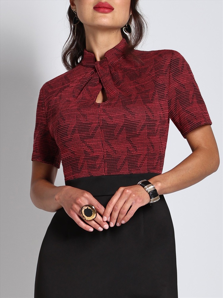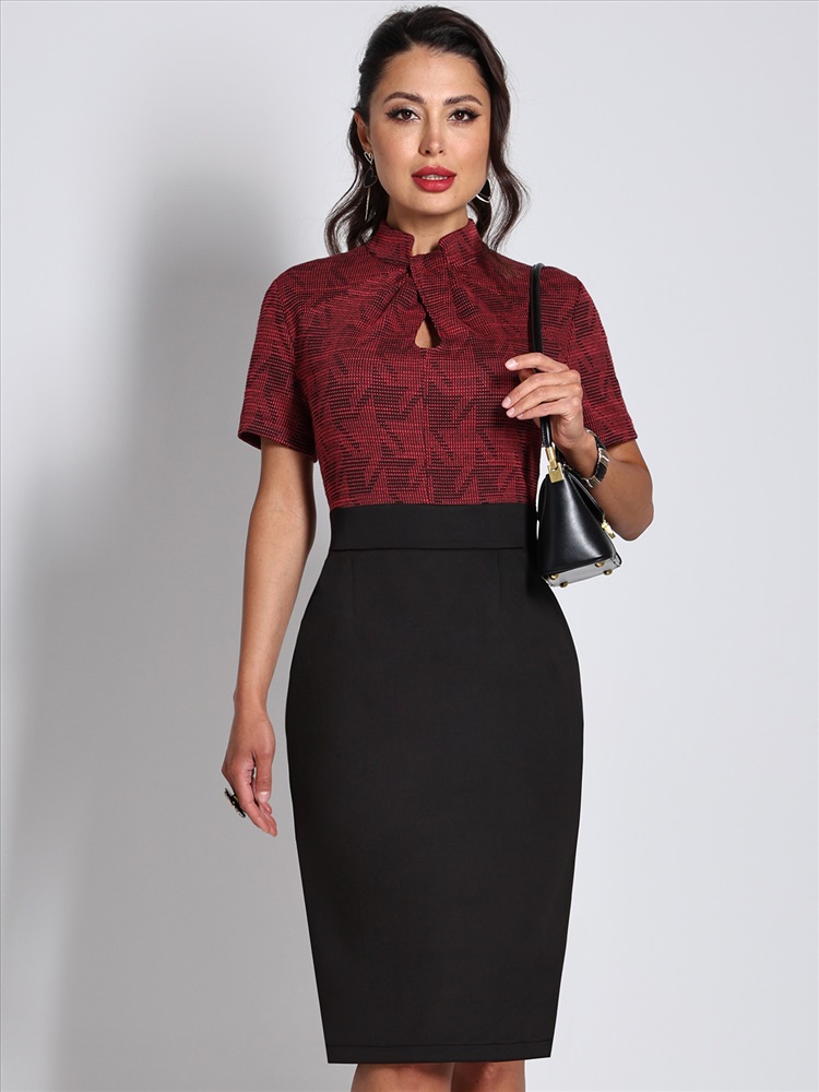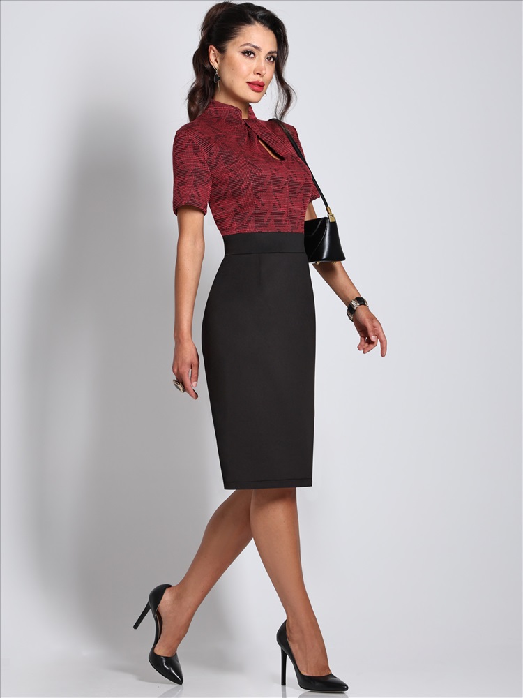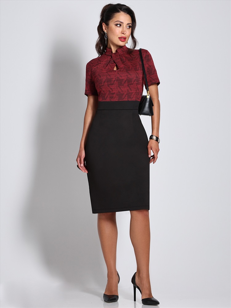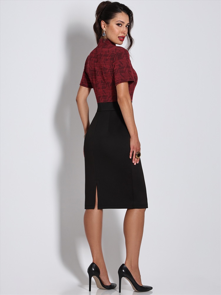 Вид застёжки: Молния Вырез горловины: Воротник-стойка Длина изделия по спинке: 101 Модель платья: Полуприлегающий силуэт Назначение: Деловой Тип рукава: Короткий Уход за вещами: Бережная стирка при 30 градусах Фактура материала: Трикотажный Состав: 98% полиэстер, 2% эластан Тип ткани: Трикотаж Цвет: Чёрный Комбинированное платье с имитацией блузки — стильная новинка для деловых леди, способная заменить сразу две вещи в гардеробе. Модель приталенного силуэта с коротким рукавом красиво подчеркивает фигуру, но не сковывает движений. Застежка на потайную молнию на спинке позволяет легко надевать и снимать платье. Элегантная модель с нарядным верхом станет идеальным выбором как для повседневных встреч, так и для похода в офис или на вечернее мероприятие. Платье выполнено из плотной ткани, которая хорошо держит форму, практически не мнется и слегка тянется. Рекомендуется стирать изделие в деликатном режиме без отжима. Длина: 44 размер - 101 см 46 размер - 101 см 48 размер - 102 см 50 размер - 102 см 52 размер - 103 см 54 размер - 103 см Бережная стирка при 30 градусах Цвет изделия на фотографии может отличаться от фактического товара, что связано с искажением цветопередачи монитором, настройками фотоаппаратуры и прочими факторами Пропорции