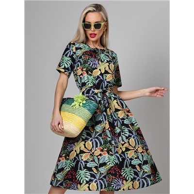 Декоративные элементы: Пояс Вид застёжки: Без застежки Вырез горловины: Округлый Длина изделия по спинке: 110 Модель платья: Полуприлегающий силуэт Назначение: Повседневная Тип рукава: Короткий Уход за вещами: Бережная стирка при 30 градусах Фактура материала: Текстильный Состав: 100% полиэстер Тип ткани: плательная Цвет: Мультиколор Легкое платье с цветочным принтом создаст яркий и запоминающийся образ. Платье предназначено для повседневной носки и подходит для создания комфортных образов в теплую погоду.Цветочный принт на ткани добавляет образу яркости и свежести, что делает платье актуальным для летнего сезона. Модель имеет короткие рукава, обеспечивающие удобство и свободу движений в жаркую погоду. Платье дополнено декоративным поясом, который подчеркивает талию и добавляет образу женственности. Застежка на платье отсутствует, что делает его простым в использовании и подчеркивает минималистичный дизайн. Ткань платья требует бережного ухода: рекомендуется стирка при температуре 30 градусов, что позволяет сохранить яркость цветов и структуру материала. Платье подходит для различных типов фигур благодаря свободному крою и регулируемому поясу. Длина: 46 размер - 110 см 48 размер - 110 см 50 размер - 111 см 52 размер - 111 см 54 размер - 112 см 56 размер - 112 см Рост модели на фотографии 170 см. Параметры модели: 88 х 63 х 96 см. Бережная стирка при 30 градусах Цвет изделия на фотографии может отличаться от фактического товара, что связано с искажением цветопередачи монитором, настройками фотоаппаратуры и прочими факторами Пропорции