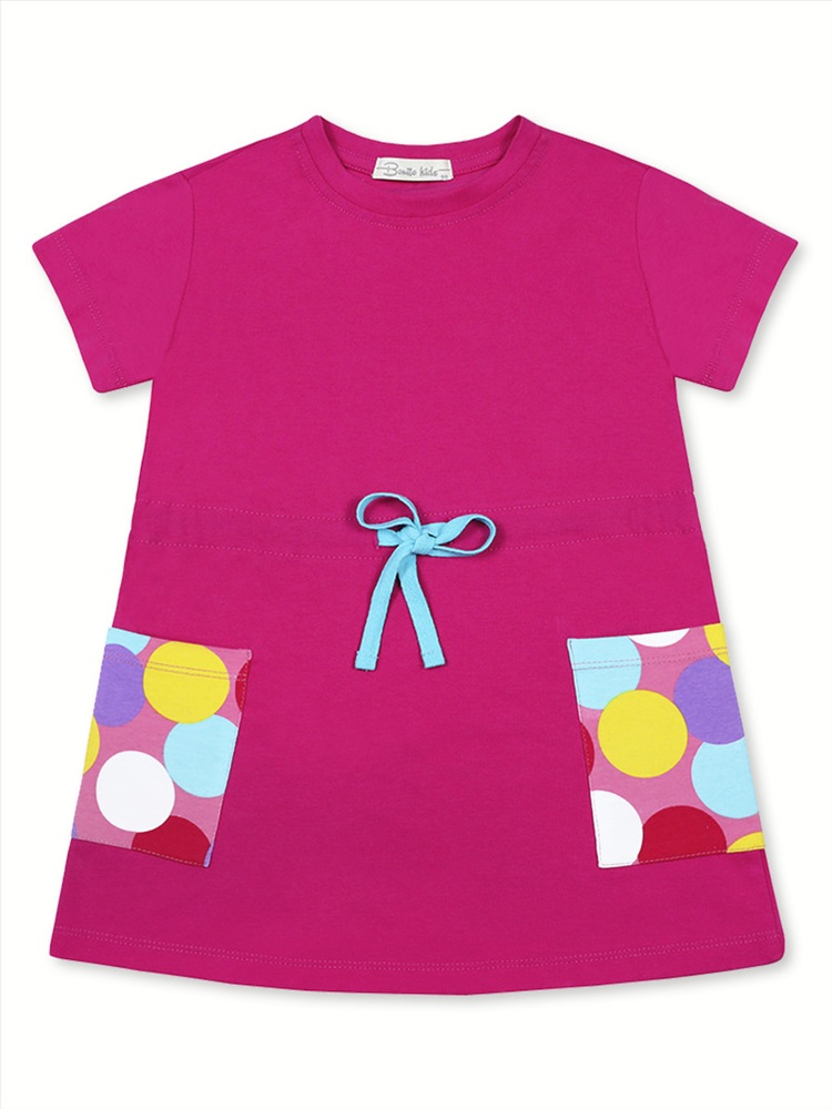 Материал: Кулирка с лайкрой Состав: Хлопок 92%, лайкра 8% Цвет: Малиновый Рисунок: Без рисунка Замечательное платье для девочки, изготовленное из тонкого трикотажа - кулирки с добавлением лайкры. По вороту - мягкая трикотажная манжета, пояс с завязками. Модель украшают два накладных кармана с ярким набивным рисунком. Внимание: цвет завязок может отличаться от представленного на фото. Замеры модели: Размер 98: длина 51 см, ширина 29 см; Размер 104: длина 53 см, ширина 31 см; Размер 110: длина 55 см, ширина 33 см; Размер 116: длина 58 см, ширина 33,5 см; Размер 122: длина 59 см, ширина 35 см. Комментарии к товару