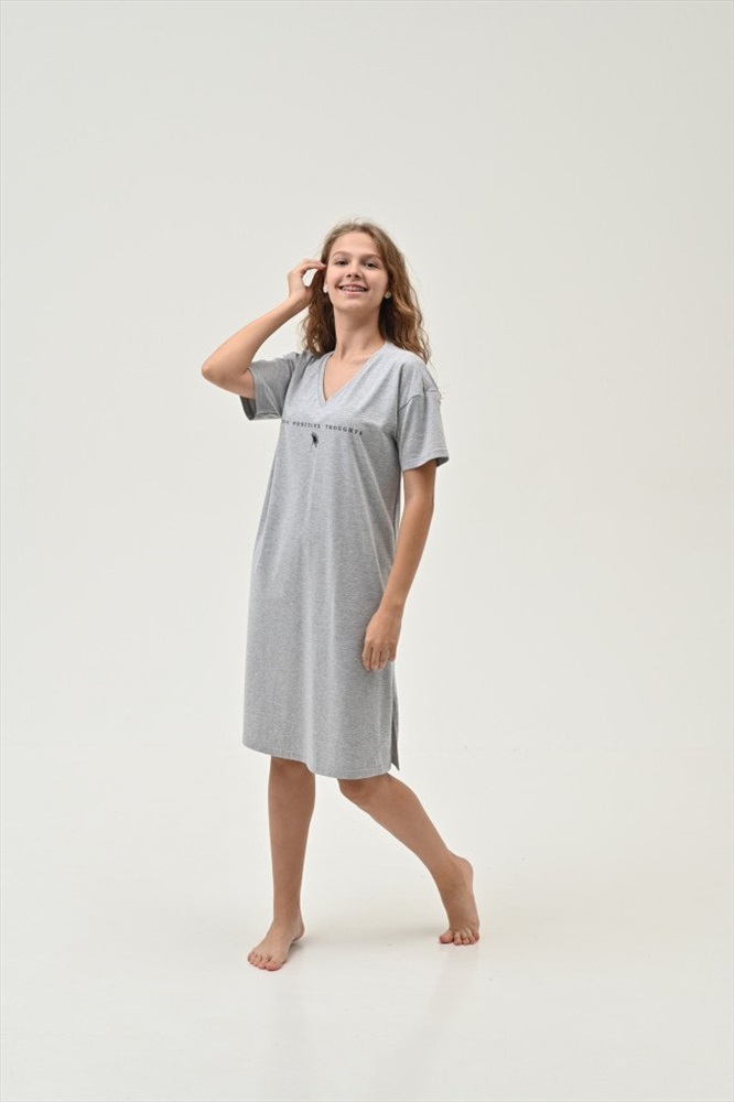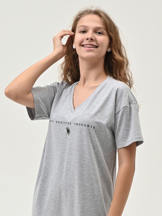 Состав: 92-хб 8-пэ Рост модели на фото, см: 170 Силуэт: прямой Вырез горловины: круглый Тип рукава: спущенное плечо Артикул: 6809-03