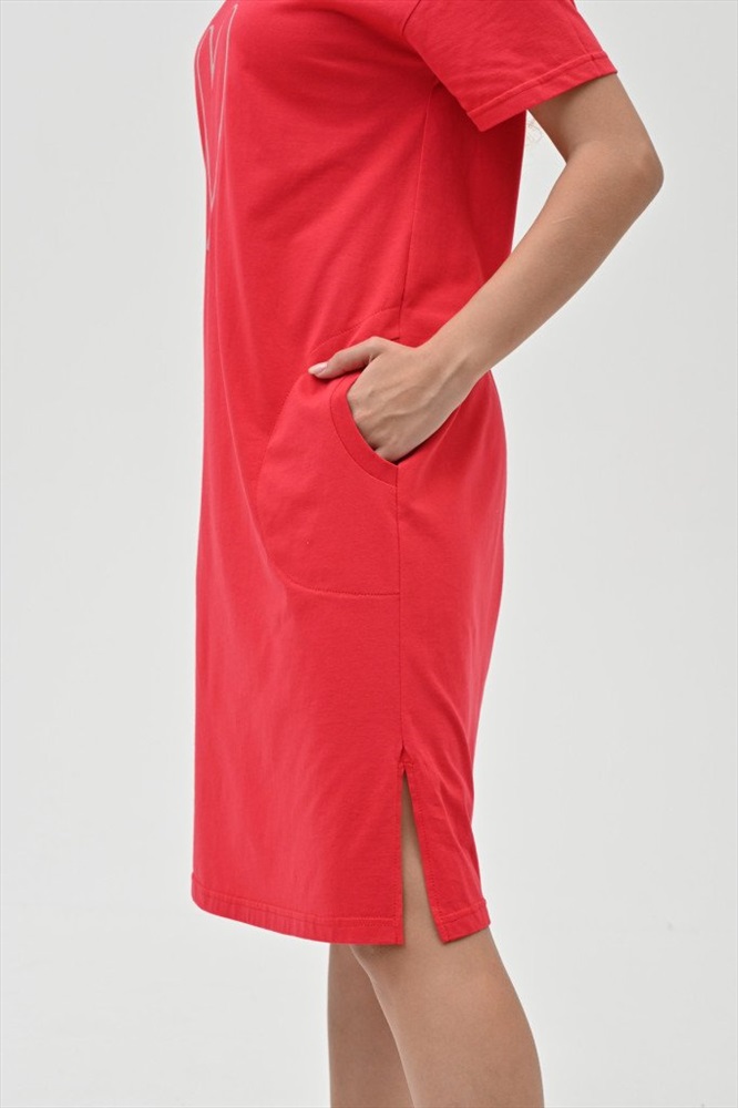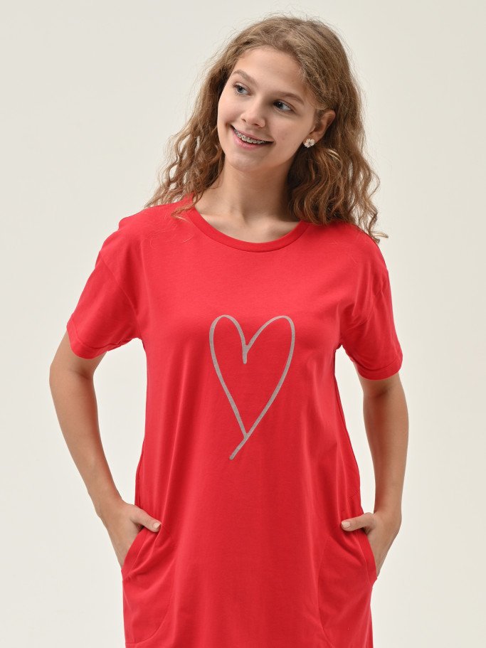 Состав: 100% хб Рост модели на фото, см: 170 Силуэт: прямой Вырез горловины: круглый Тип рукава: спущенное плечо Карманы: в боковом шве Артикул: 6812-05