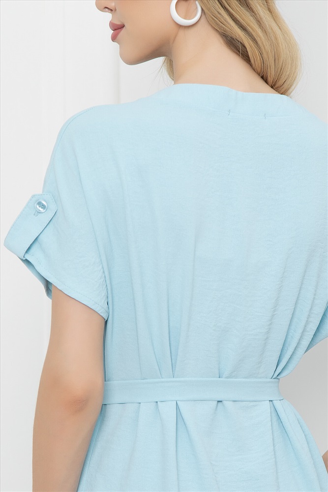 Утонченное платье придаст образу легкости и изысканности. Платье свободного кроя без подклада - это идеальный вариант на каждый день. Разрезы в боковых швах придают образу кокетства. Рукав укороченный с декоративной патой. Достоинства фигуры подчеркивает пояс из основной ткани, который входит в комплект.