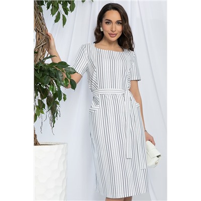 Платье в полоску - стильное и оригинальное решение в гардеробе каждой женщины. Оно поможет акцентировать внимание на красивой фигуре, а также скрыть недостатки нестандартной комплекции. Такое платье прекрасно дополнит ваш базовый гардероб. Вырез горловины - каре красиво подчеркнет ключицы. Рукав втачной, короткий. Принт "полоска" визуально вытянет фигуру и сделает стройнее. В комплекте пояс из основной ткани.