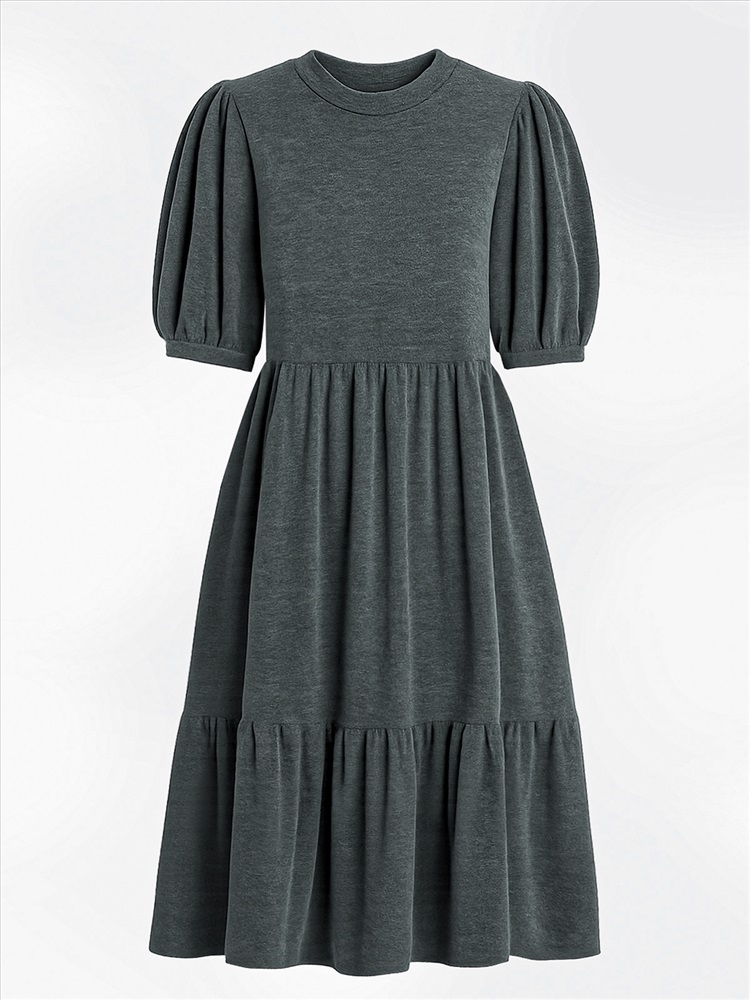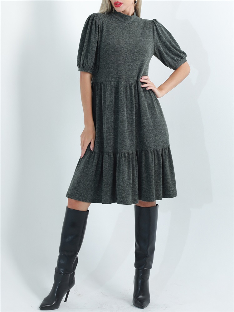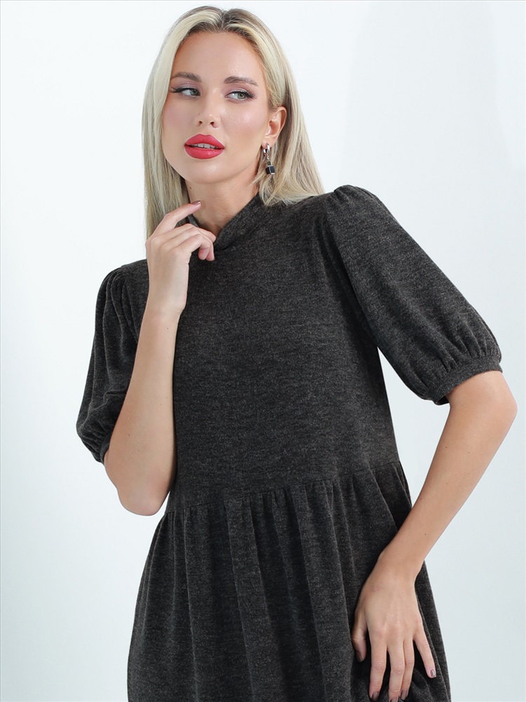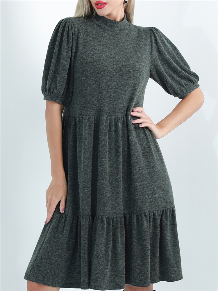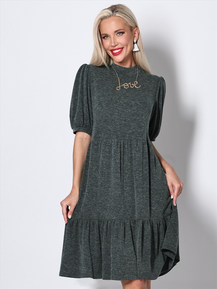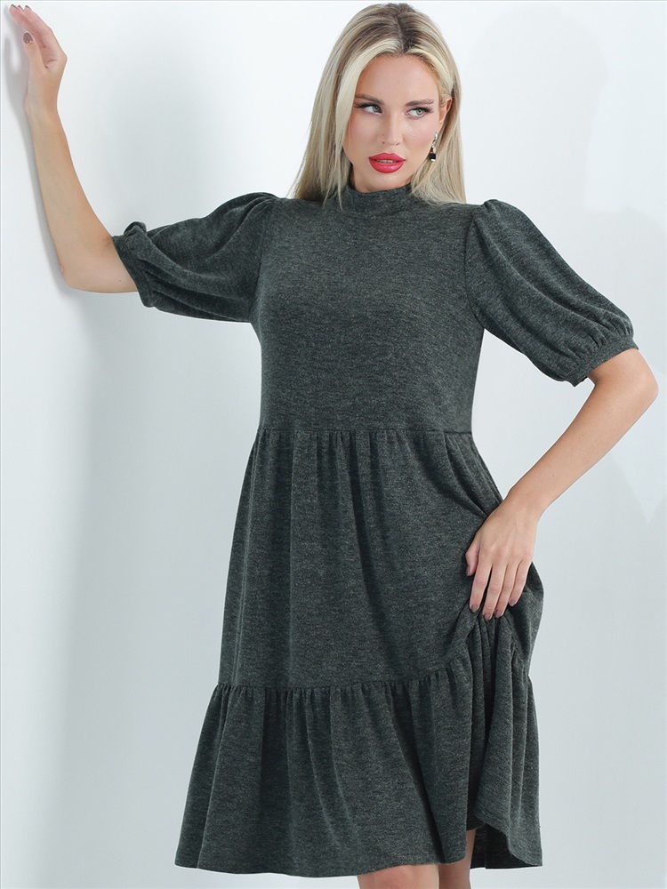 Декоративные элементы: Оборка Вид застёжки: Без застежки Вырез горловины: Воротник-стойка Длина изделия по спинке: 99 Модель платья: А-силуэт Назначение: Повседневная Тип рукава: Короткий Уход за вещами: Бережная стирка при 30 градусах Фактура материала: Трикотажный Состав: 65% полиэстер, 30% вискоза, 5% эластан Тип ткани: Трикотаж Цвет: Серо-зелёный Платье изготовлено из трикотажной ткани, что отличает его своей легкостью и мягкостью, обеспечивая высокий уровень комфорта при носке. Свободный силуэт с ярусными оборками плавно расклешается к низу, дарит чувство легкости и прекрасно смотрится на женщинах любой комплекции. Пышные рукава выглядят кокетливо и нежно. Вы будете чувствовать себя настоящей модницей в этом платье, которое подчеркнет вашу красоту и изящество. Длина: 44 размер - 99 см 46 размер - 99 см 48 размер - 100 см 50 размер - 100 см 52 размер - 101 см 54 размер - 101 см Бережная стирка при 30 градусах Цвет изделия на фотографии может отличаться от фактического товара, что связано с искажением цветопередачи монитором, настройками фотоаппаратуры и прочими факторами Пропорции