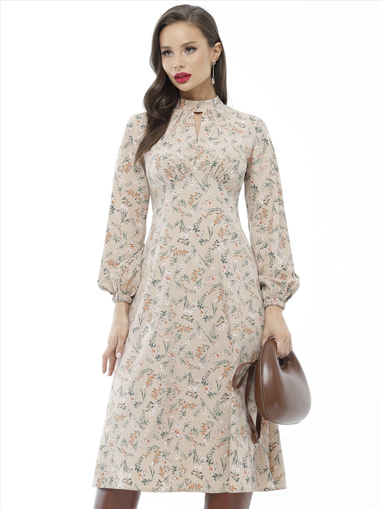 Вид застёжки: Молния Вырез горловины: Воротник-стойка Длина изделия по спинке: 109 Модель платья: Полуприлегающий силуэт Назначение: Повседневная Тип рукава: Длинный Уход за вещами: Бережная стирка при 30 градусах Фактура материала: Текстильный Состав: 100% полиэстер Тип ткани: ниагара Цвет: Бежевый Романтичное платье с принтом — женственная новинка, которая станет главным украшением гардероба. Приталенный силуэт с расклешенной юбкой красиво подчеркивает привлекательные изгибы тела. Пышные рукава на манжетах добавляют образу легкости и нежности. Изюминкой платья становится фигурный вырез у воротника-стойки, который превращает модель в настоящий хит сезона и притягивает взгляды. Изделие выполнено из мягкой, струящейся ткани, которая не просвечивает и не выцветает. Нарядное платье мгновенно подчеркнет женственность и поможет выглядеть безупречно как каждый день, так и на свидании или торжественном мероприятии. Рекомендуется стирать модель в бережном режиме без отжима при температуре до 30 градусов и сушить естественным путем. Длина: 44 размер - 109 см 46 размер - 109 см 48 размер - 110 см 50 размер - 110 см 52 размер - 111 см 54 размер - 111 см Бережная стирка при 30 градусах Цвет изделия на фотографии может отличаться от фактического товара, что связано с искажением цветопередачи монитором, настройками фотоаппаратуры и прочими факторами Пропорции