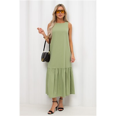 Летнее платье А - силуэта. Округлая горловина на внутренней обтачке. По спинке застежка на потайную молнию. В боковых швах функциональные карманы. Низ оформлен притачным воланом.