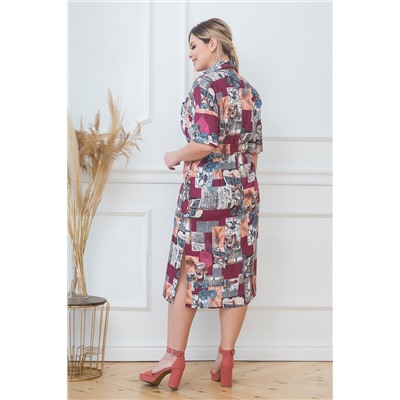 Платье - рубашка прямого силуэта. Классический рубашечный воротник на стойке и планка до низа на пуговицах. Перед дополнен накладными карманами. Втачной рукав оканчивается притачной манжетой. Тканевый пояс дополнительно акцентирует талию. Низ ровный, по бокам разрезы. Платье универсальный вариант для работы и отдыха.