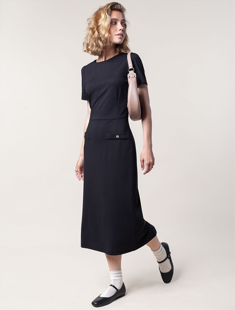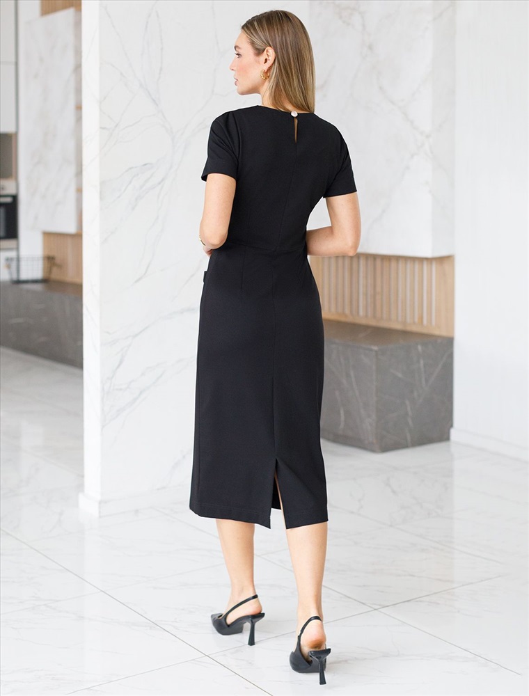 Плотность: 310 Г/м2 Параметры модели на первом фото: Рост 170, бюст 89, талия 63, бедра 92 Платье выполнено из гладкого джерси. Благодаря эластичности трикотажа и застежке на боковую потайную молнию, модель идеально сидит по фигуре не сковывая движений. Сзади застежка на пуговицу. Черное платье из джерси – это универсальная база и классика, которую можно носить в любое время года. Комментарии к товару