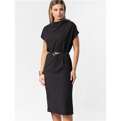 Параметры модели на первом фото: Рост 170, бюст 89, талия 63, бедра 92 Лаконичное платье сшито из эластичного крепа. Достаточно сдержанный вырез горловины хорошо комбинирует с цельнокроеным рукавом и мягкой драпировкой на плече. На спинке застежка из двух пуговиц. Ткань почти не мнется и хорошо держит форму. В подарок идет ремешок из эко-кожи.